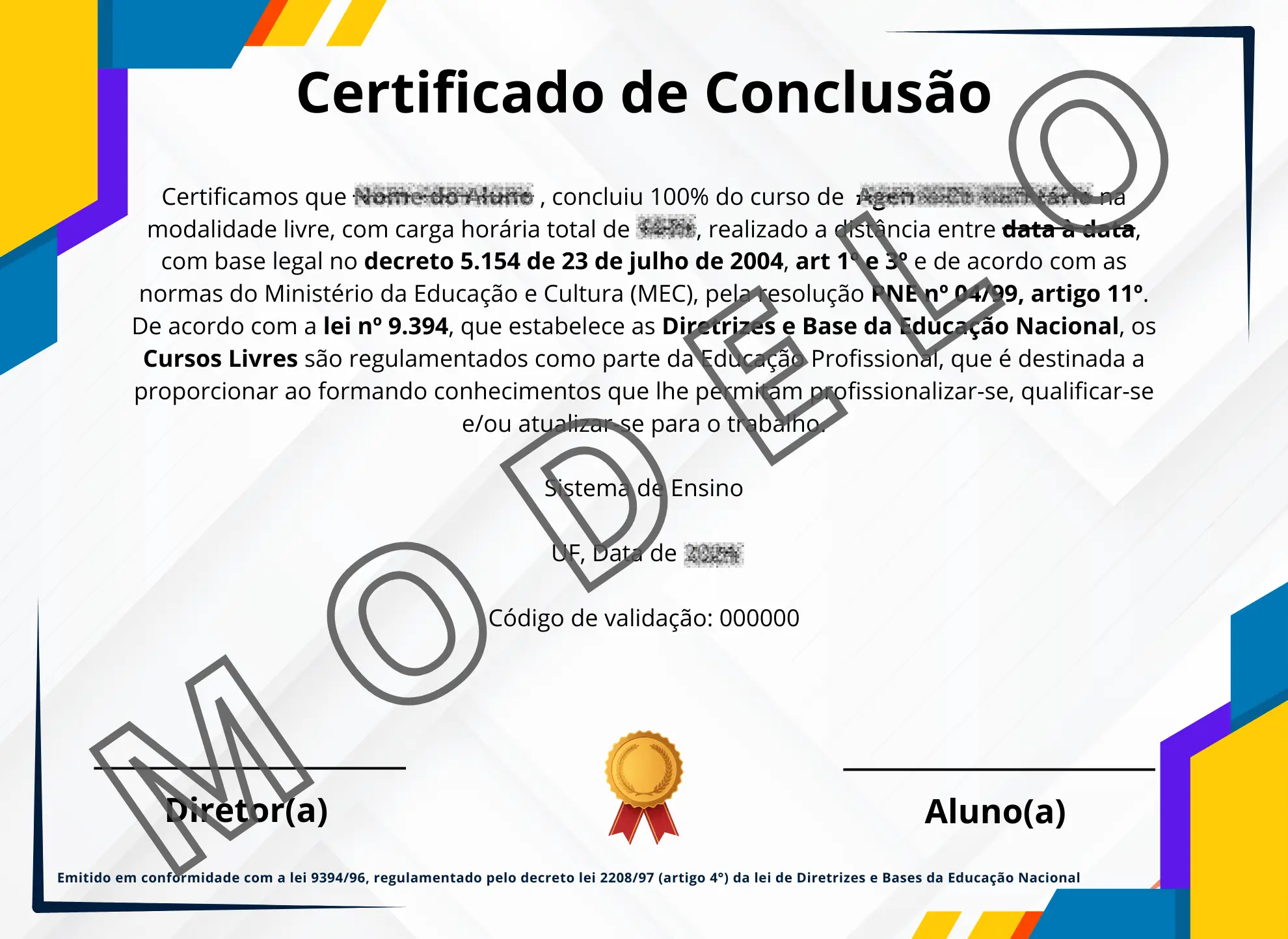 Nosso certificado é válido em todo o Brasil e está dentro das normas do MEC na categoria de cursos livres. Use para: